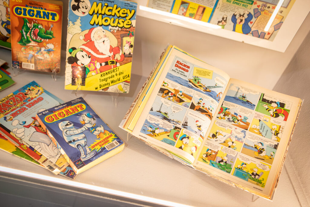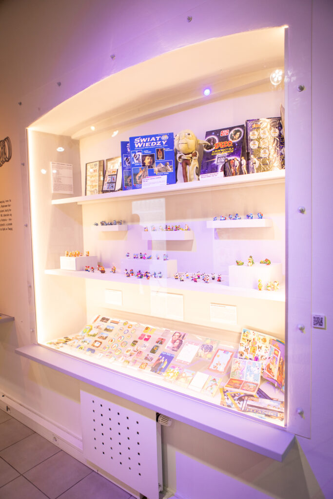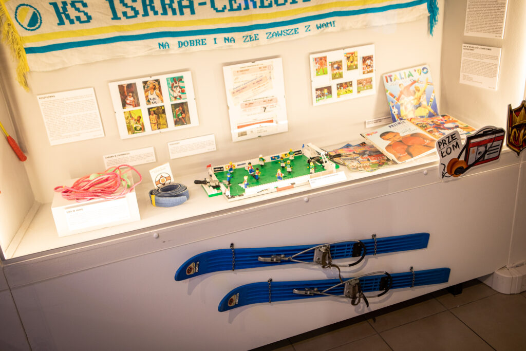 Na ekspozycji prezentujemy szeroki wybór obiektów, które współtworzyły świat dorastania w latach 90. Są wśród nich zarówno zabawki i gry – od klasycznych planszówek po pierwsze konsole i komputery – jak i przedmioty codziennego użytku, które dziś mają charakter niemal symboliczny. Zwiedzający zobaczą m.in. kasety magnetofonowe, walkmany, czasopisma młodzieżowe, kolekcjonerskie karteczki, a także elementy wyposażenia pokojów dziecięcych i szkolnych. Każdy z tych obiektów stanowi fragment większej opowieści o świecie sprzed ery smartfonów i mediów społecznościowych.